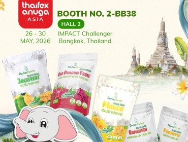 Chào đón sự kiện THAIFEX 2026 từ 26-30/5/2026. Ghé thăm gian hàng Darlac Farms (Booth No.2-BB38, Hall 2) tại Bangkok để trải nghiệm trái cây sấy thăng hoa nguyên chất từ Việt Nam.