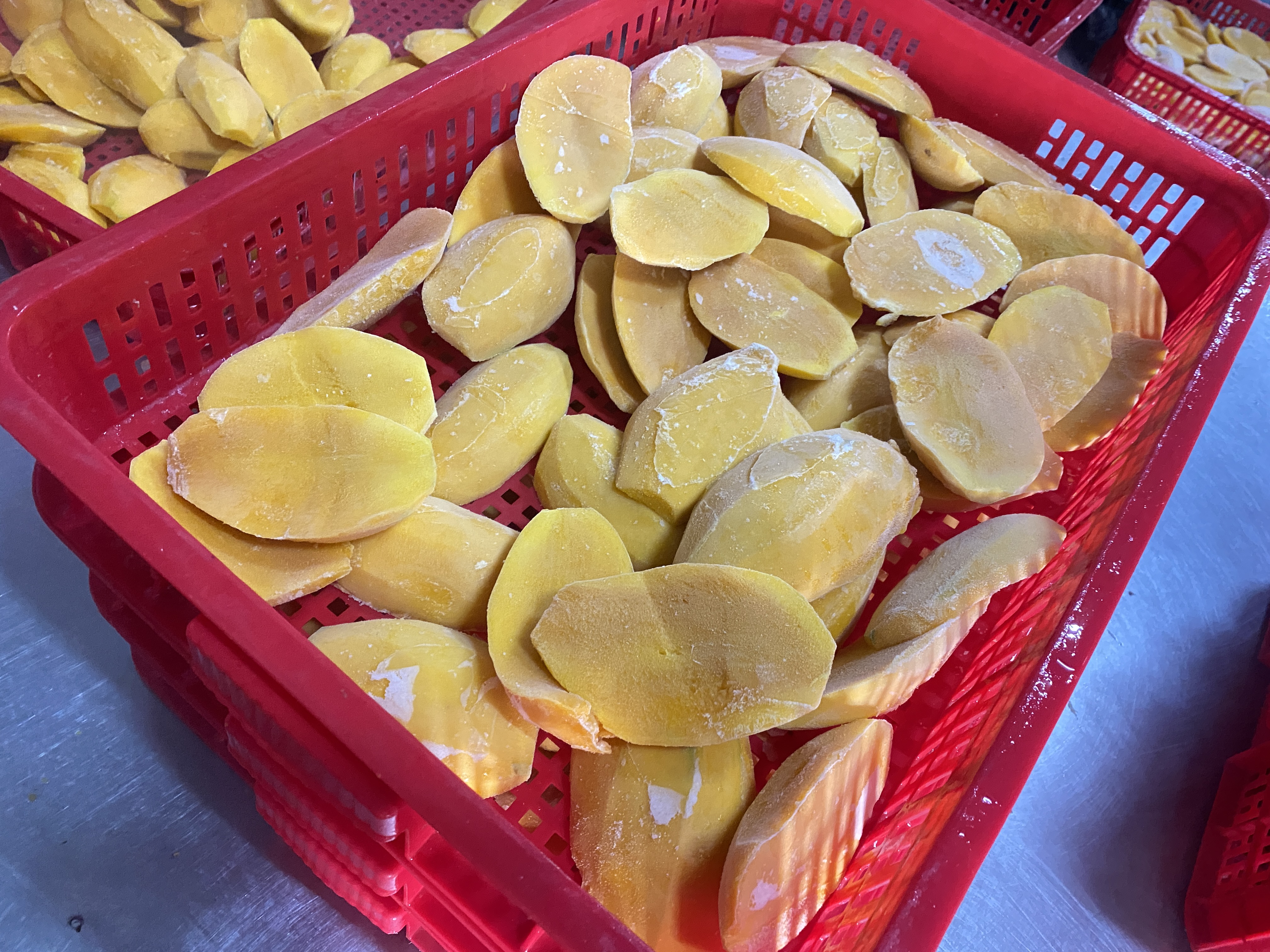 Xoài cấp đông được làm từ những trái xoài chín tự nhiên, tuyển chọn kỹ lưỡng và xử lý bằng công nghệ cấp đông nhanh hiện đại. Quy trình này giúp giữ trọn hương vị ngọt ngào đặc trưng của xoài nhiệt đới, màu sắc tự nhiên, cấu trúc thịt quả cùng các dưỡng chất quan trọng như vitamin A, vitamin C, beta-carotene và khoáng chất.