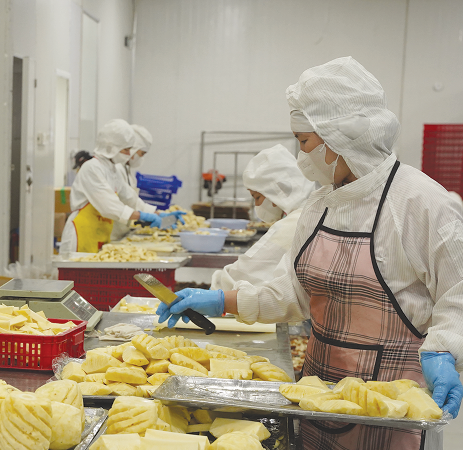 Thơm (dứa) cấp đông được sản xuất từ những trái thơm chín tự nhiên, tuyển chọn kỹ lưỡng và xử lý bằng công nghệ cấp đông nhanh hiện đại. Quy trình này giúp giữ trọn hương vị nhiệt đới tươi mát đặc trưng, màu sắc tự nhiên, cấu trúc thịt quả cùng các dưỡng chất quan trọng như vitamin C, enzyme bromelain và khoáng chất. Sản phẩm giữ được độ tươi ngon cao, tiện lợi trong bảo quản và sử dụng, phù hợp cho ngành thực phẩm, đồ uống, chế biến công nghiệp và dịch vụ ăn uống.